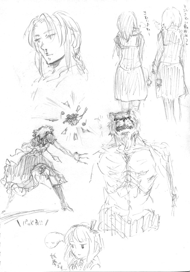 で、その期間全然絵とか描いてなかったんで、リハビリを兼ねてスケブにがりがりってました。